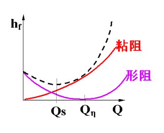 由水力損失圖示(右圖)可知:額定流量Qs(ηh=0.8--0.9)下hf最小,η最高。一般小型離心泵的效率為50%--70%,大型泵可高達(dá)90%。