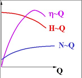 (3)η~Q:先Q↑→η↑,達(dá)ηmin后Q↑→η↓,ηmax點(diǎn)——設(shè)計(jì)點(diǎn)。