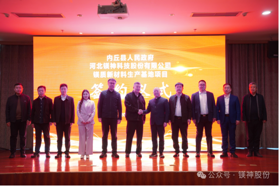 2025年3月28日,河北鎂神科技股份有限公司與內(nèi)丘縣人民政府在阿爾卡迪亞酒店悅盛廳隆重舉行鎂質(zhì)新材料生產(chǎn)基地項(xiàng)目簽約儀式。該項(xiàng)目總投資20.25億元,選址邢臺(tái)市內(nèi)丘縣工業(yè)園區(qū),致力打造世界..