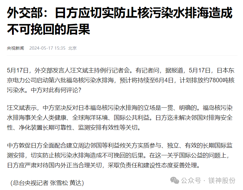 日本核污染水第六輪排海已開始,始終警惕日本鎂鹽以次充好
