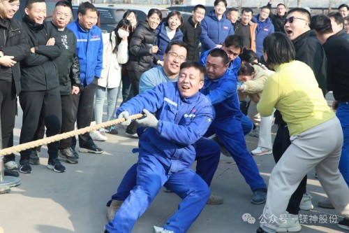 以部門分組建7支戰(zhàn)隊,運動會開始前,各隊成員依次喊出口號,盡顯團結(jié)奮進、永爭第一的鎂神風(fēng)采。矯健的身姿躍動著奮進的活力,傳遞著團結(jié)的力量。賽場之上,熱鬧非凡,歡笑與吶喊交織成最動人的樂章。拔河賽場,隊員們緊握長繩、腳蹬大地,心往一處想、勁往一處使,繩索兩端的堅持與拼搏,是鎂神人同心聚力的最佳詮釋。