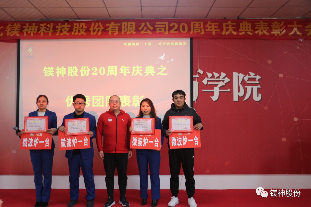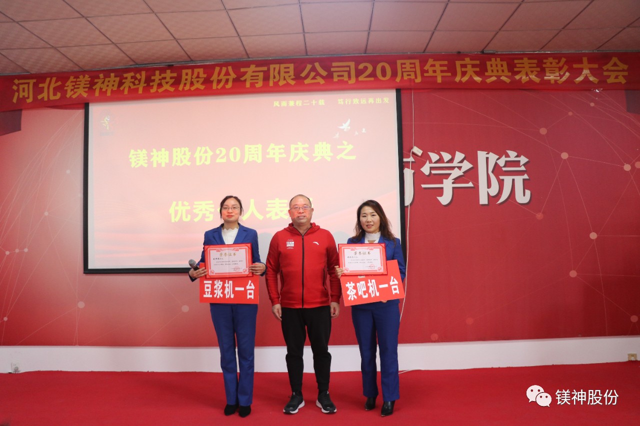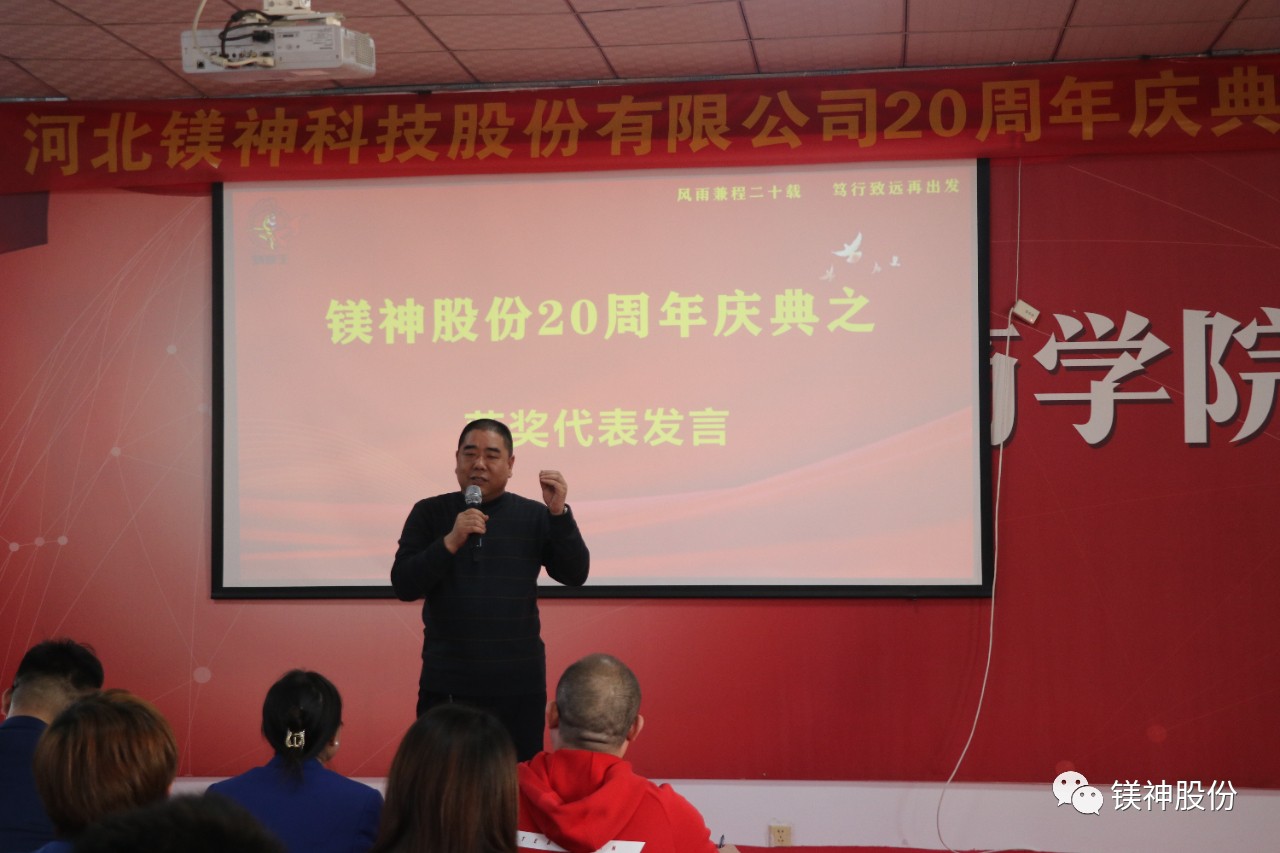 2023年10月,我們先后舉行了老員工表彰大會、“創(chuàng)新引領(lǐng)發(fā)展,應用贏得未來”中國鎂鹽協(xié)會技術(shù)論壇暨鎂神科技20周年慶典、“合作共贏、攜手未來”河北鎂神科技股份有限公司20周年慶典暨大客戶交流活動。