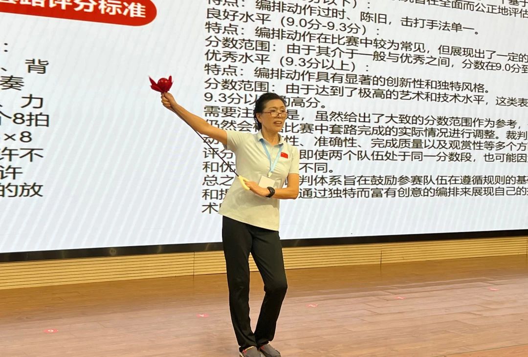 在為期三天的活動中,不僅有健身球操競賽規(guī)則的解讀,還包括賽事活動的組織策劃及套路教學(xué)。