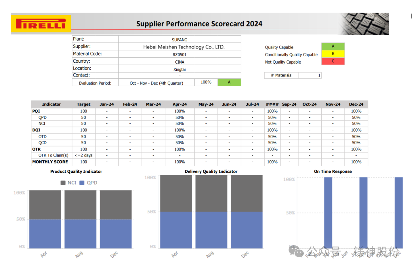 近日,鎂神科技憑借卓越的質(zhì)量與服務(wù)殊榮獲輪胎行業(yè)標(biāo)桿企業(yè)倍耐力輪胎授予的A類(lèi)優(yōu)秀供應(yīng)商。這不僅是客戶對(duì)我司過(guò)去一年辛勤付出和卓越成就的高度認(rèn)可,也是對(duì)其未來(lái)合作發(fā)展的深切期待。