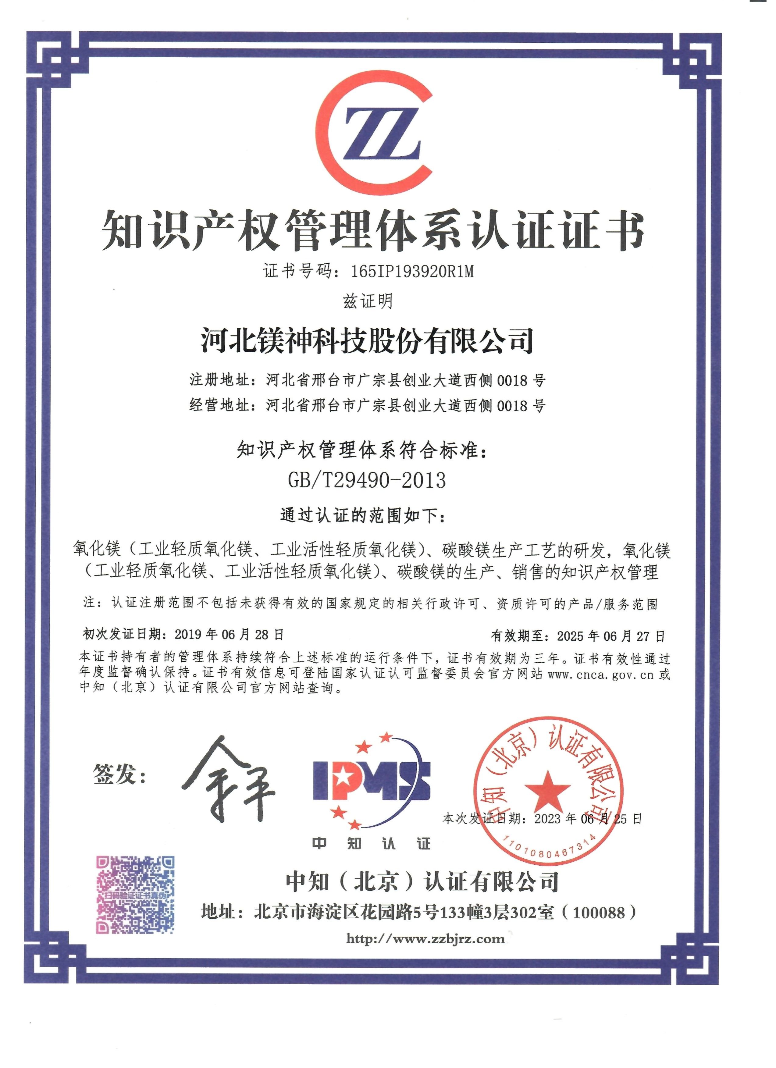 知識(shí)產(chǎn)權(quán)管理體系認(rèn)證證書